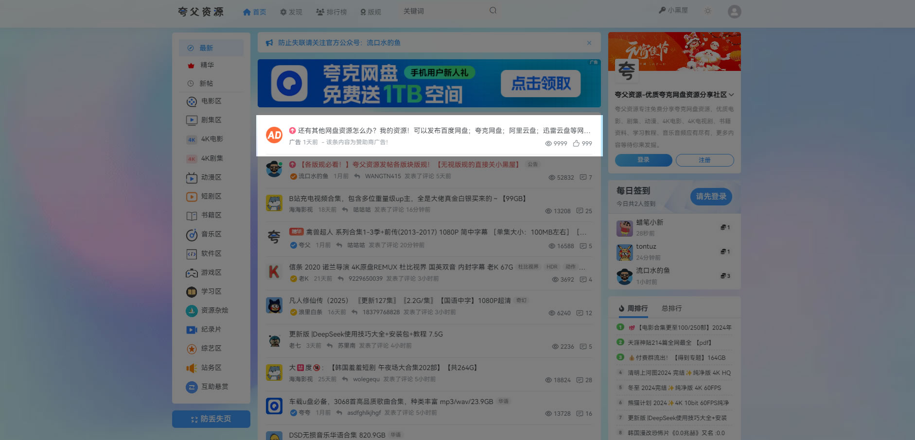 夸父资源是一个夸克网盘资源分享论坛,聚集着全球网盘爱好者,用户群体为年轻,时尚用户,并具有高技能、高素质、高消费的特点。 广告收入是本论坛持续运营的主要支持方式,为了网站健康发展,承接各类合法广告,如果您有意向,可通过邮件联系我们商谈!