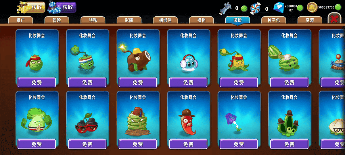 在植物大战僵尸2国际服的基础上,让金币、钻石、植物等可以免费获取升级