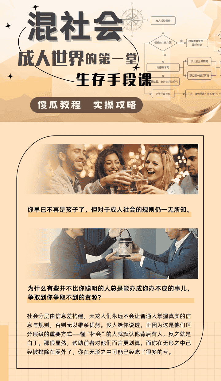 《混社会:步入成人世界的第一堂生存手段课》是B站的一门付费课程,由法学博士、体制内干部博士阿辉主讲。内容涵盖求人办事、社交技巧、人脉构建等多个方面,为用户提供直接可实操的成人世界生存攻略。