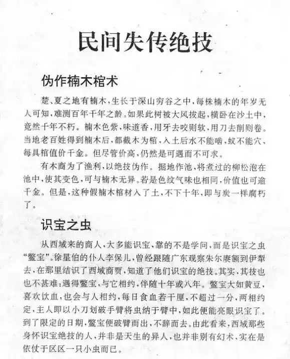 记录各种民间的绝技、秘方、秘术。