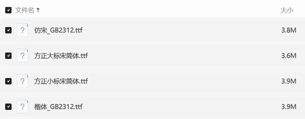 【PC】公文常用字体 仿宋GB2312 楷体GB2312 方正大标宋等四款[15.2Mb]Win、Linux均可