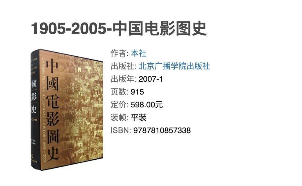 《中国电影图史:1905-2005 》(中国电影图史编辑委员会)【定价: 598.00元】【PDF/942.6MB】
