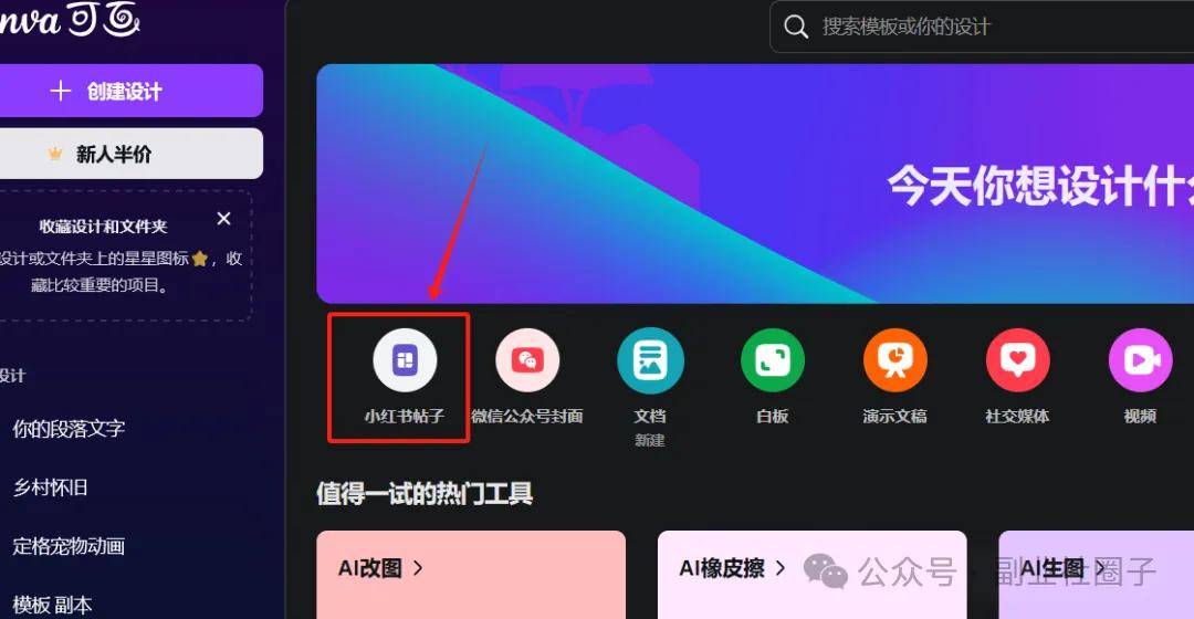 选择小红书帖子,这样出来的画布比例就和前面生成的图片比例相同了