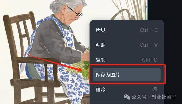 在画布中,右键,选择保存为图片