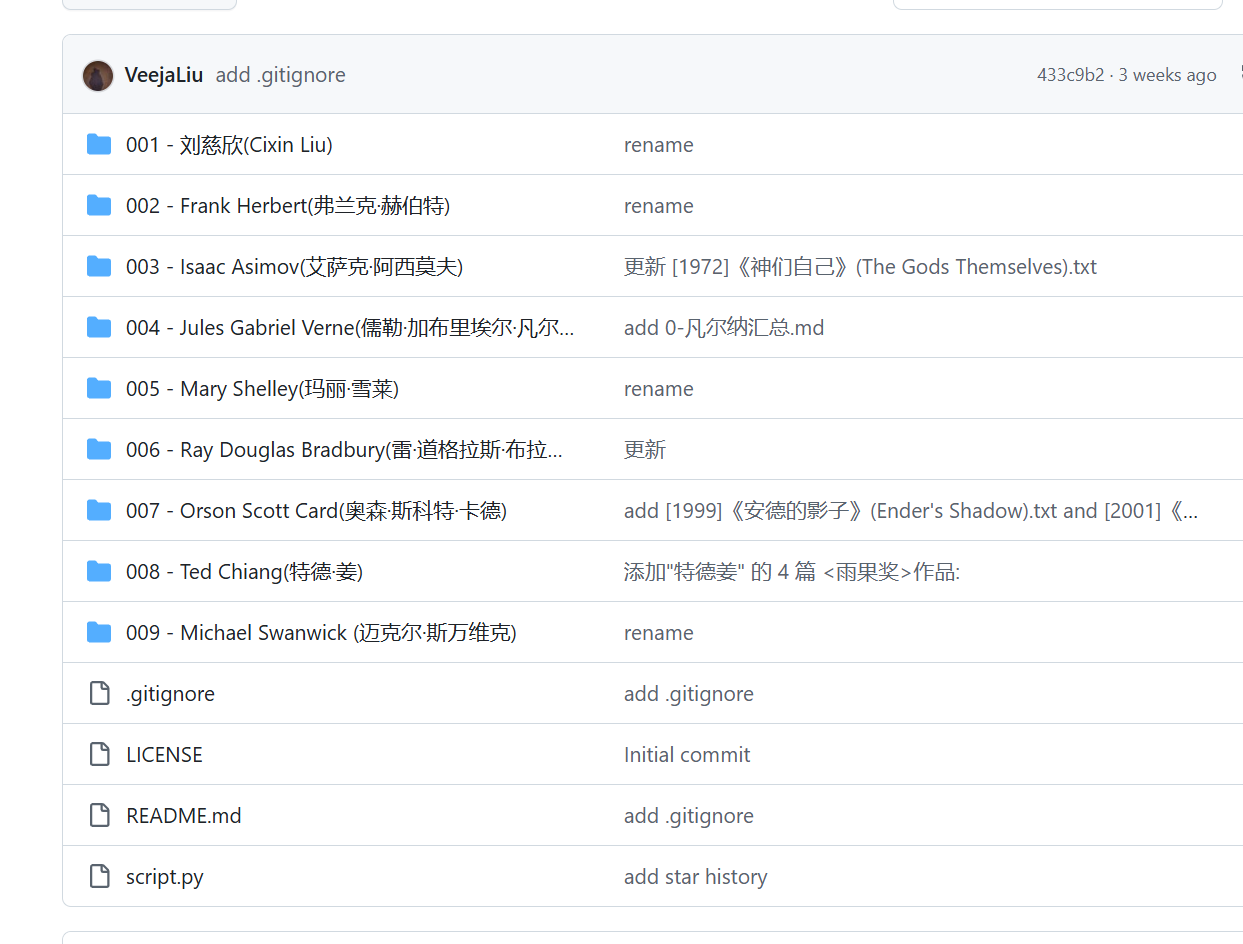 ScienceFictionCollection是一个以科幻小说为主题的作品集,包含多位著名科幻作家的经典作品和相关内容。作家包括刘慈欣、弗兰克·赫伯特、艾萨克·阿西莫夫、儒勒·凡尔纳、玛丽·雪莱、雷·布拉德伯里、奥森·斯科特·卡德、特德·姜和迈克尔·斯万维克等。作品按照添加顺序整理,涵盖从刘慈欣的《三体》系列、弗兰克·赫伯特的《沙丘》系列到艾萨克·阿西莫夫的“基地”和“机器人”系列,以及儒勒·凡尔纳的《海底两万里》、《地心游记》等经典之作,同时也包括玛丽·雪莱的《弗兰肯斯坦》、特德·姜的《你一生的故事》等现代佳作。这些文件以多种格式储存,按作家分类并附详细目录,为科幻迷提供了丰富的阅读资源。